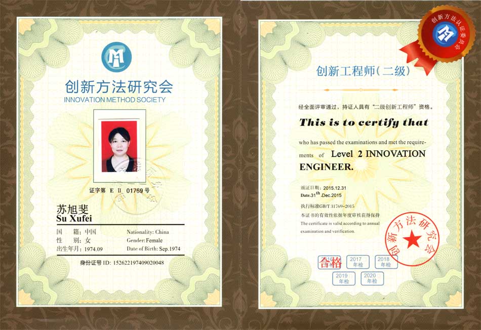 蘇旭斐創(chuàng)新二級證書