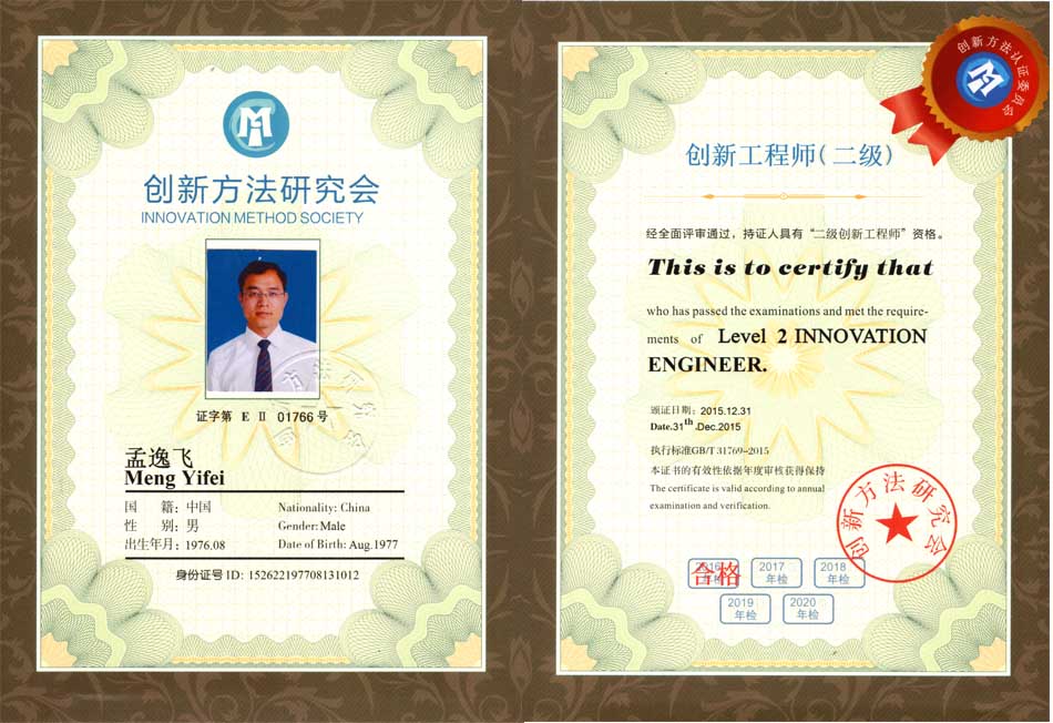 孟逸飛創(chuàng)新二級(jí)證書(shū)