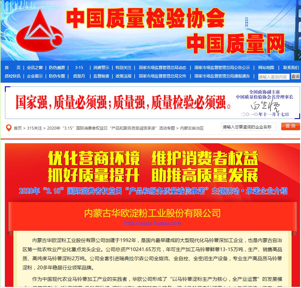華歐公司參加了中國(guó)質(zhì)量檢驗(yàn)協(xié)會(huì)主辦的以“全面抗擊疫情響應(yīng)‘三?!袆?dòng) 傳遞質(zhì)量信任 引導(dǎo)質(zhì)量消費(fèi)--抓好質(zhì)量提升、助推高質(zhì)量發(fā)展,優(yōu)化消費(fèi)環(huán)境、維護(hù)消費(fèi)權(quán)益”為主題的2020年“3.15”產(chǎn)品和服務(wù)質(zhì)量誠(chéng)信承諾主題活動(dòng)。