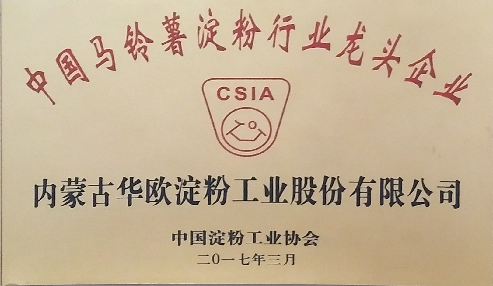 4月19日,在北京召開的中國(guó)淀粉工業(yè)協(xié)會(huì)八屆二次理事會(huì)上,內(nèi)蒙古華歐淀粉工業(yè)股份有限公司榮獲“中國(guó)馬鈴薯淀粉龍頭企業(yè)”的稱號(hào)。